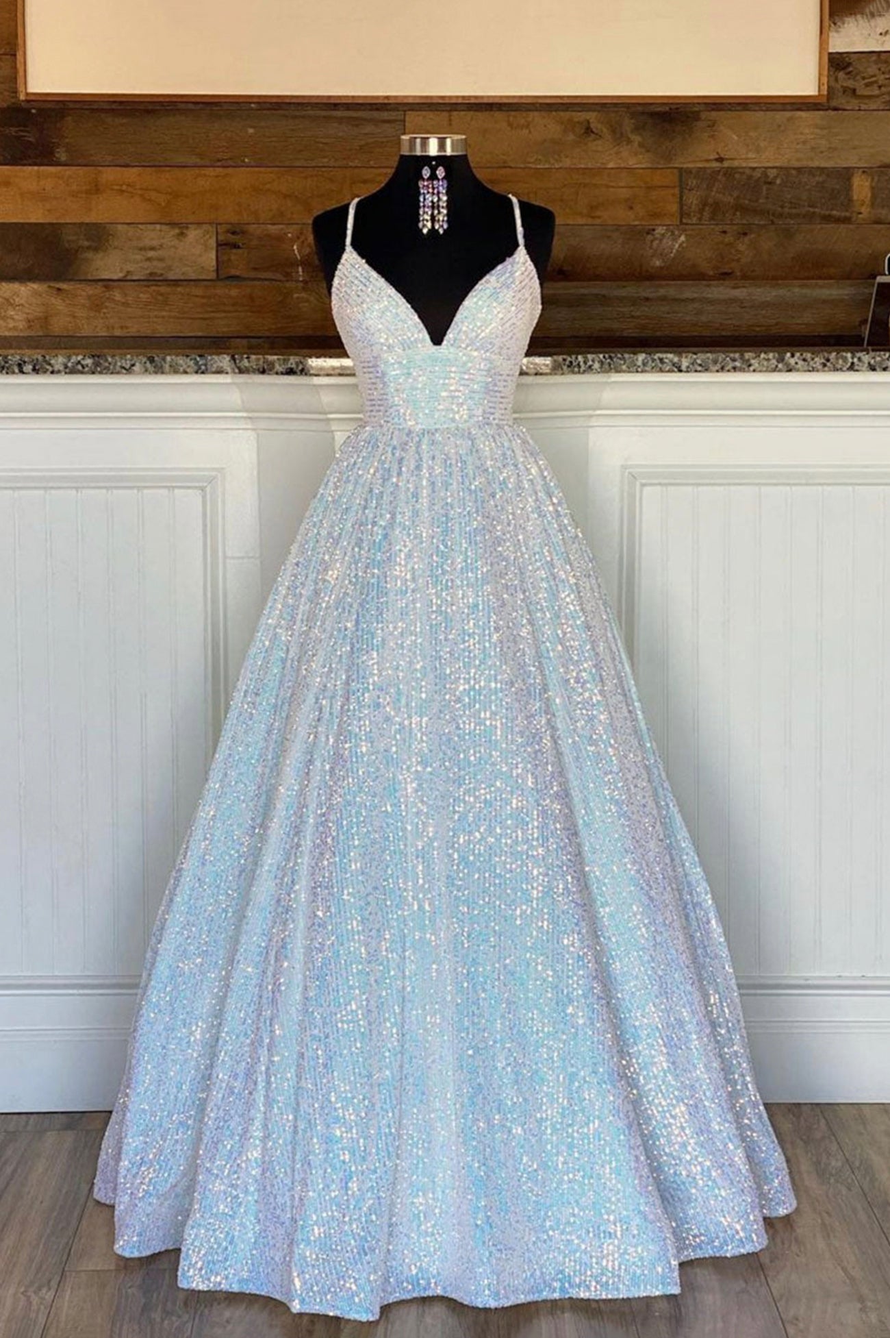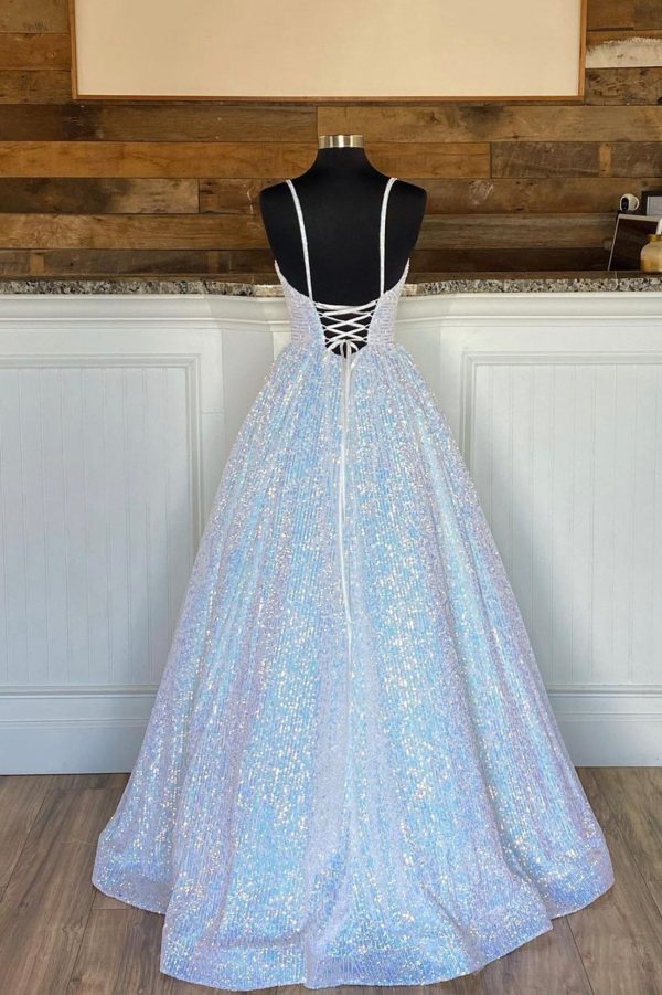 Product DetailSilhouette: A-LineMaterial: SequinsWaist: NaturalBack Details: Lace-UpLength: Floor LengthLining: Fully LinedBuilt-In Bra: Yes